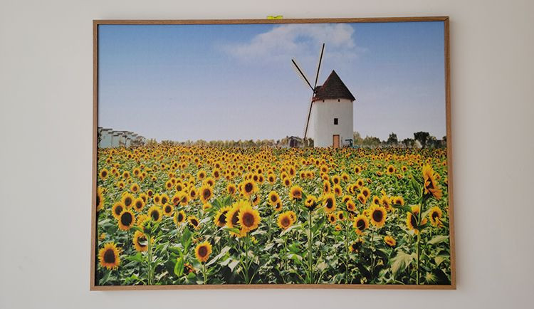 The backing board of the sound-absorbing picture is made of high-density porous fiber sound-absorbing material, combined with heat transfer printing technology. The pattern can be customized, providing excellent decorative and sound-absorbing effects. Custom sizes are available, with an aluminum alloy frame that is resistant to deformation and moisture. It can be used as an acoustic panel for walls, soundproof wall panels, and indoor sound absorption.