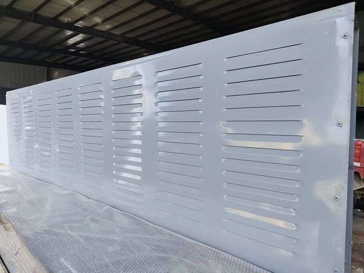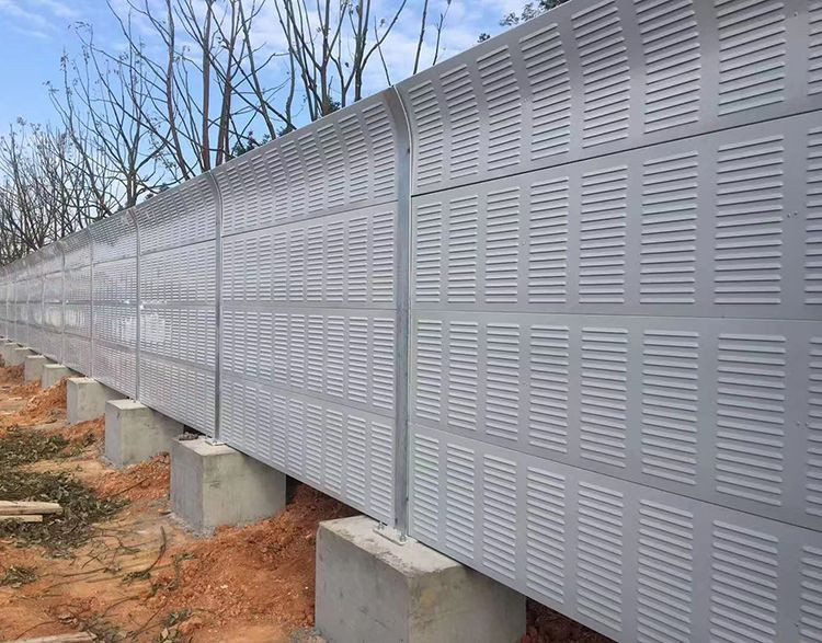 The sound barrier is assembled from two layers of galvanized perforated sheets with sound-absorbing cotton filled inside.