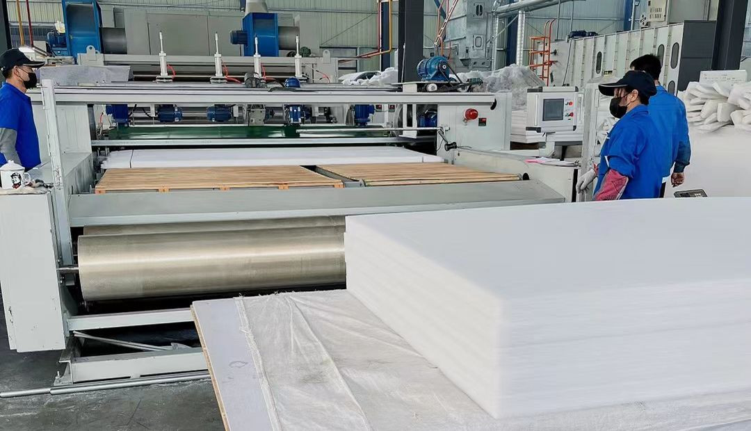 Made from 100% polyester fiber. The product is eco-friendly, sound-absorbing, flame retardant, thermal insulating, and moisture-proof. It can be used as soundproofing and sound-absorbing filler material for walls in building applications.